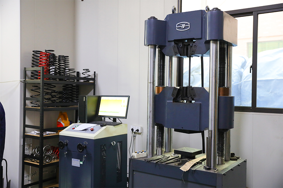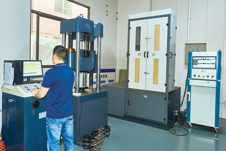 Компания создала независимый центр тестирования и располагает инструментами и оборудованием для тестирования в Китае. Он обладает возможностями тестирования в области механических свойств металлов, характеристик металлообработки, металлографического контроля при термообработке, химического анализа металлов, коррозии и защиты металлов, цилиндрических винтовых пружин и т. д. Он имеет возможность выполнять полноценные испытания различных материалов и пружин, включая попеременные испытания покрытий и других видов обработки поверхности, испытания в солевом тумане и усталостные испытания пружин подвески и тормозных пружин.